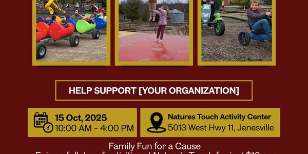 Organize your next event at Nature's Touch Activity Center, whether a school outing or a non-profit gathering. You're creating memorable experiences and contributing to a meaningful cause by choosing us as your venue. Call today to check your date!